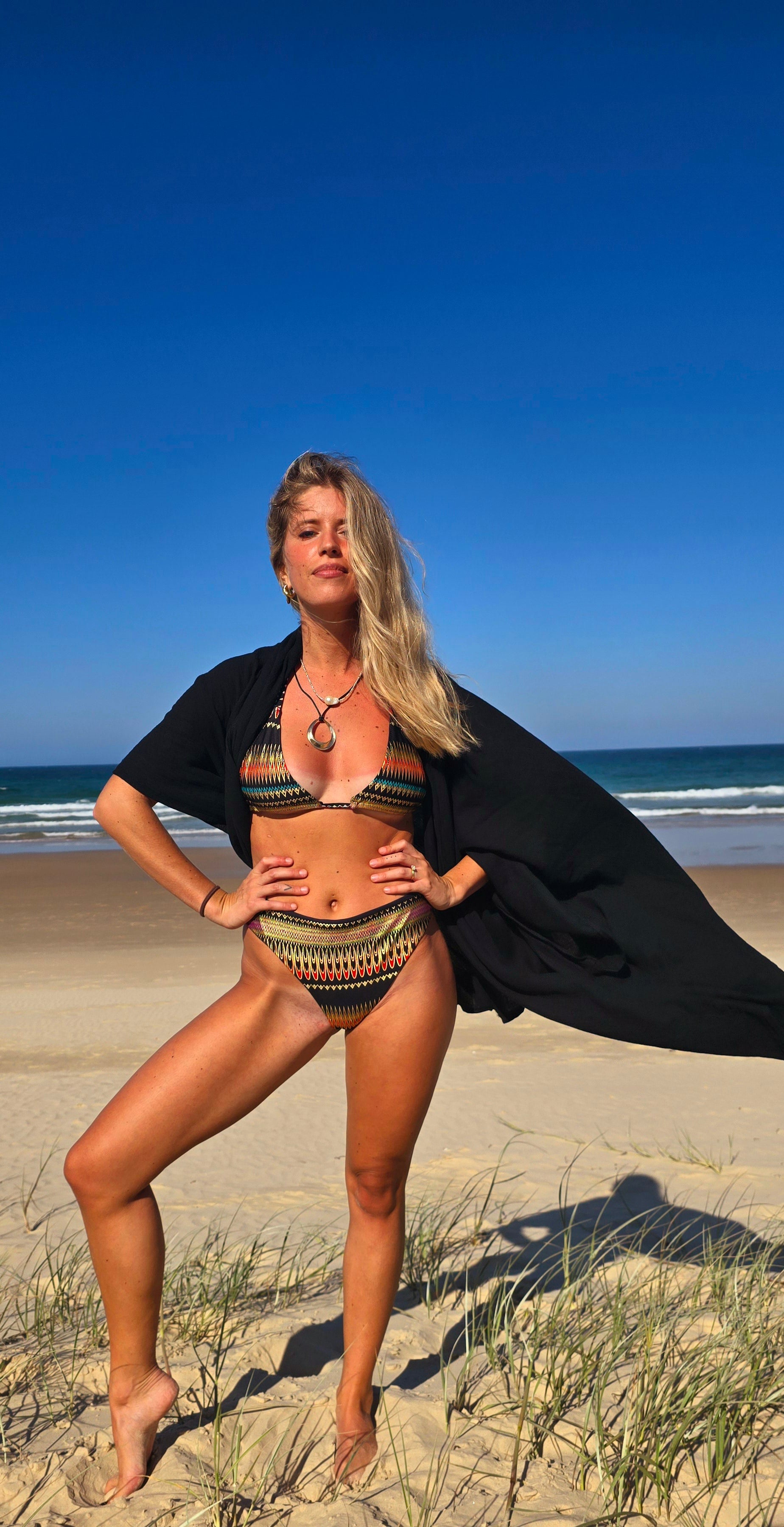 The gorgeous Bali Kimono is the perfect flowing open Cape style Kimono. Throw over your bikini or team with our Bali sarong and Bali crop for the dreamiest island outfit x
