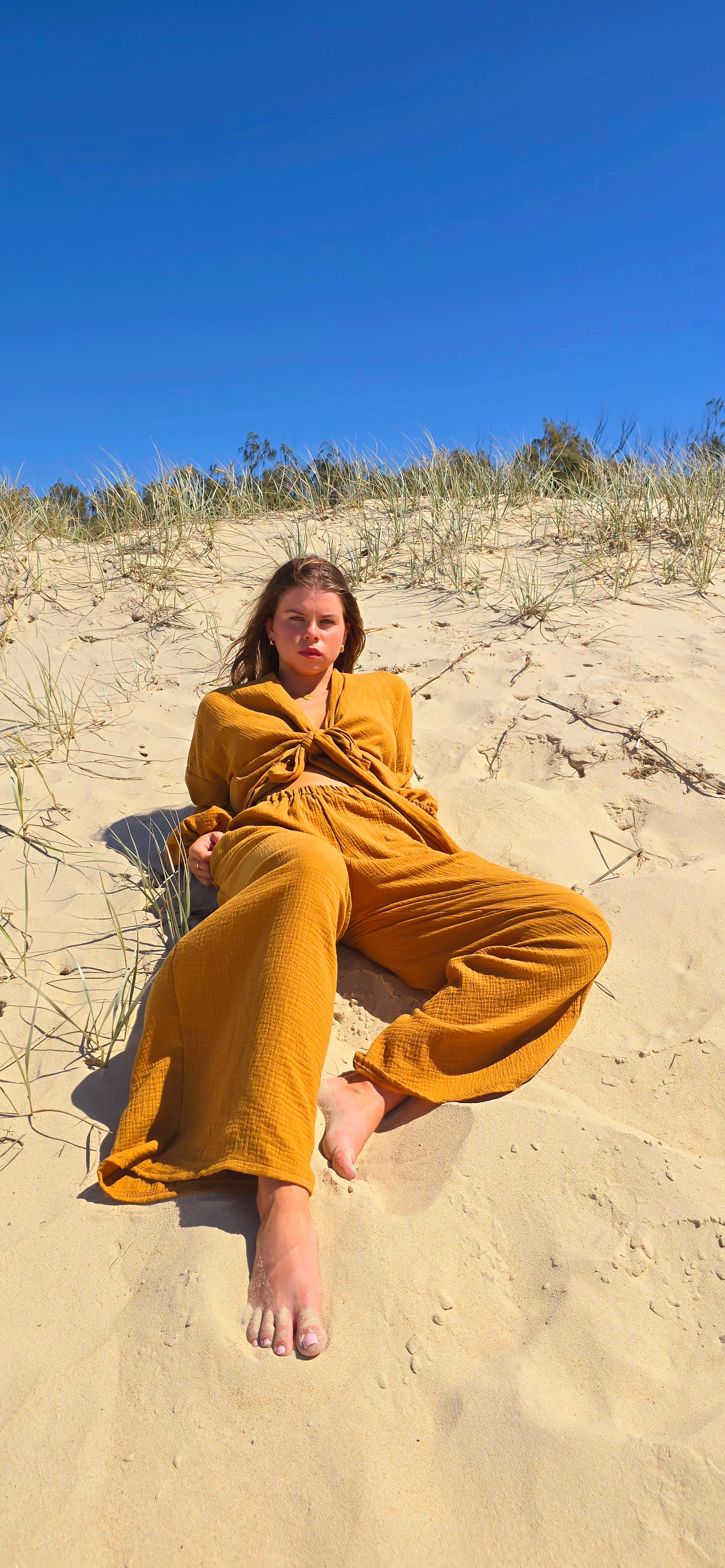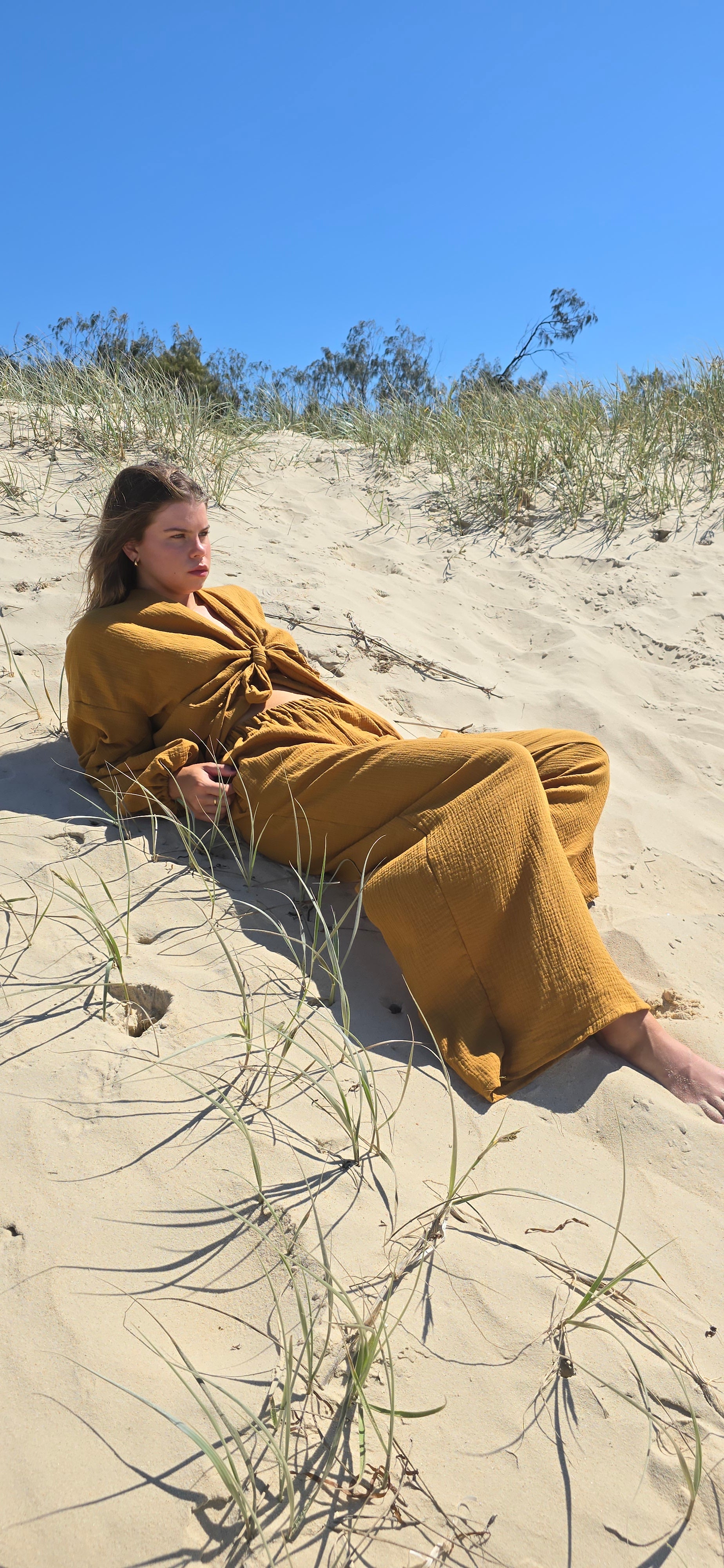 Designer blouse sleeve with elasticated wrists and versatile wrap style adds to this much loved item, and is a signature of the Castaways Collection wear as loose tie front top, or can be worn as as wrap top.